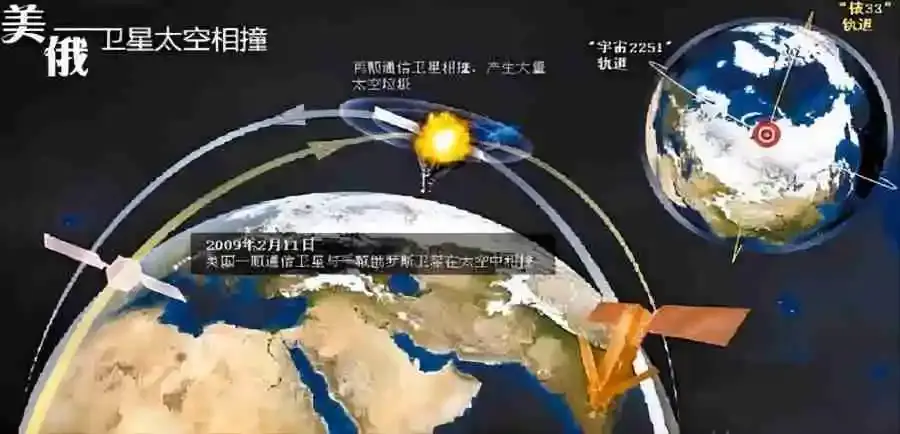 2009年,美国“铱星33号”与俄罗斯废弃卫星“宇宙2251号”对撞,炸出近2000块碎片,为了避免碰撞风险,当时的空间站还进行了规避机动。